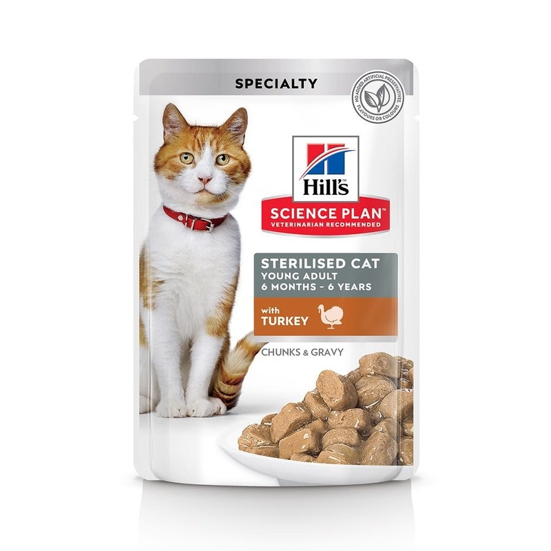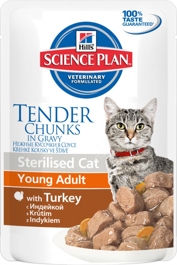 Влажный корм Hill's Science Plan для молодых стерилизованных кошек и кастрированных котов, пауч с индейкой в соусе - 85 г