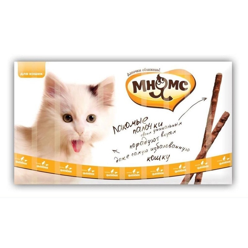 Мнямс лакомые палочки для кошек с цыпленком и печенью 13,5 см - 5 г (10 шт)