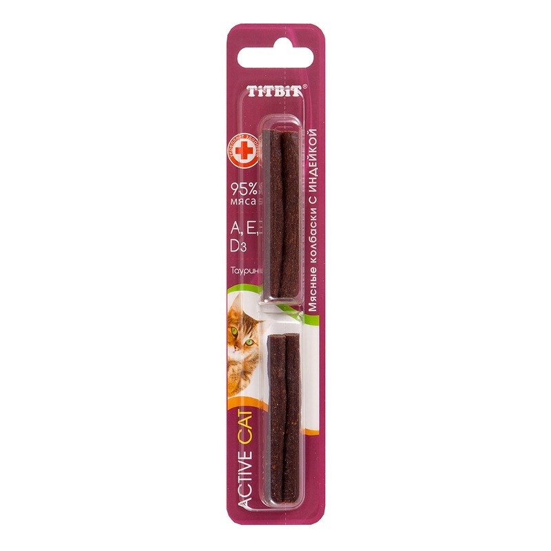 TiTBiT Active Cat лакомства в форме мясных колбасок с индейкой для кошек