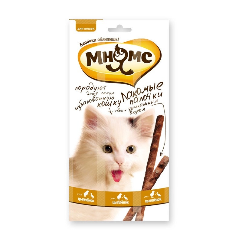 Мнямс лакомые палочки Цыпленок с уткой 13,5 см для кошек - 5 г х 3 шт