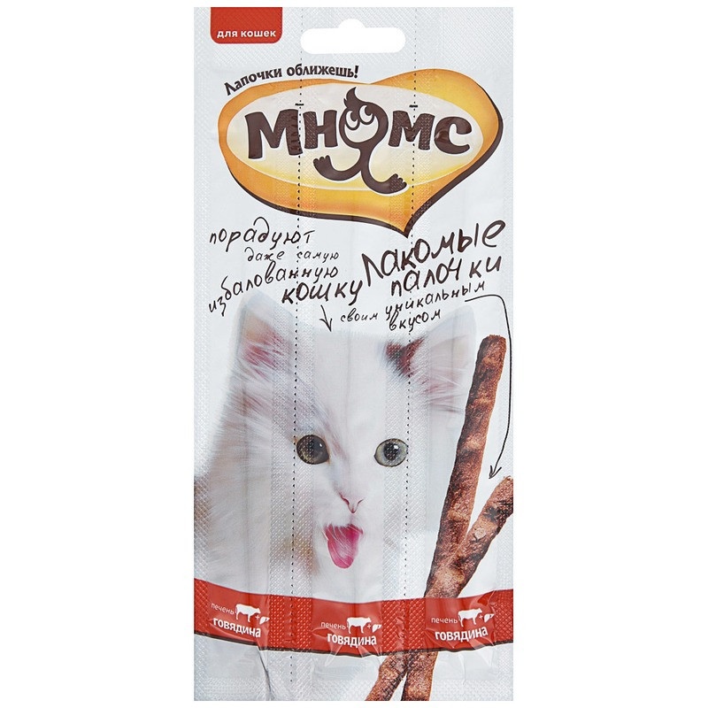 Мнямс лакомые палочки Говядина с печенью 13,5 см для кошек - 5 г х 3 шт