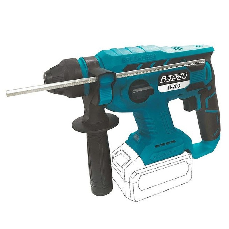 Перфоратор аккумуляторный ВАРЯГ П-260 (БЕСЩЕТОЧНЫЙ, 21В, 0-1400 об/мин, 0-4500 уд/мин, 2Дж) кейс, без АКБ, без ЗУ (1/5)