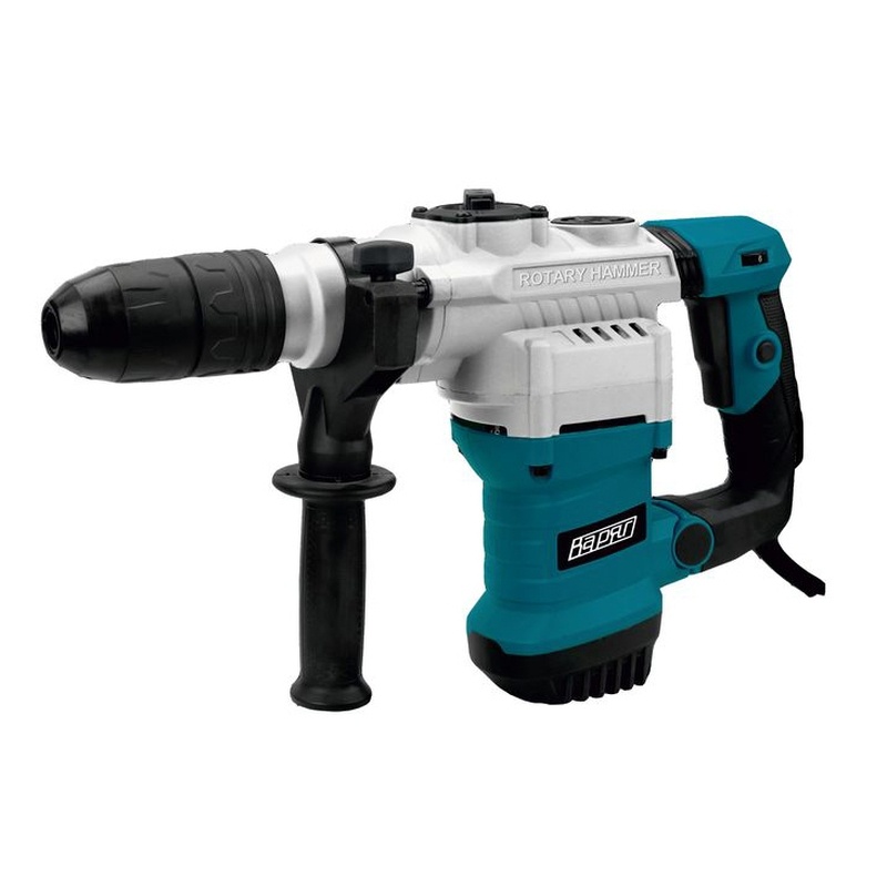 Перфоратор оснащён надёжным вертикально расположенным электродвигателем мощностью 1500 Вт, производительным пневматическим механизмом, обеспечивающим силу удара 10 Дж и патроном, который позволяет быстро менять рабочую оснастку.