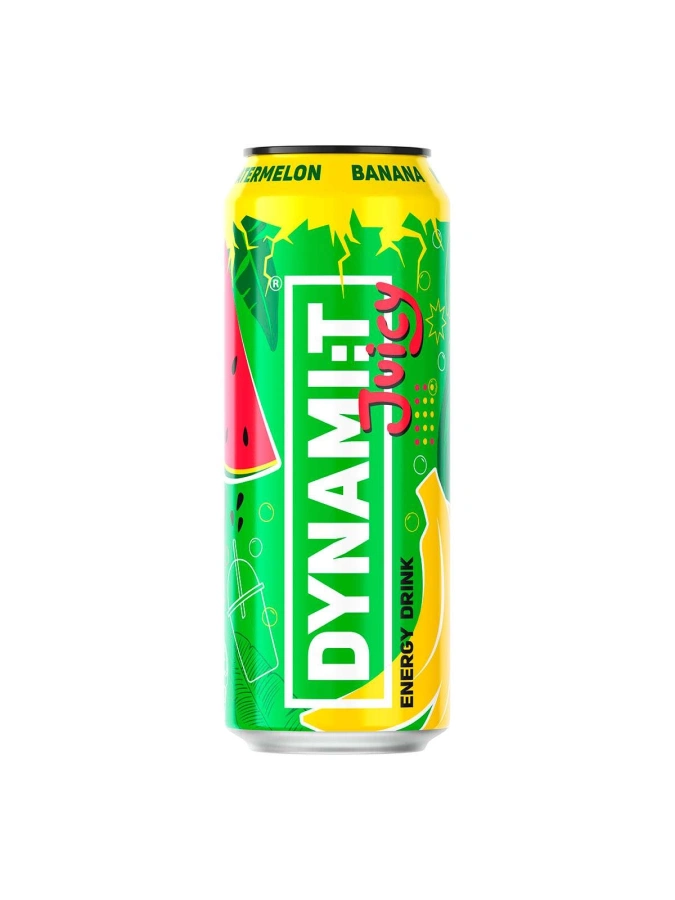 Напиток безалк. газ. энерг. непаст. «ДИНАМИТ СО ВКУСОМ БАНАНА И АРБУЗА» ал.бан. 0,45л.